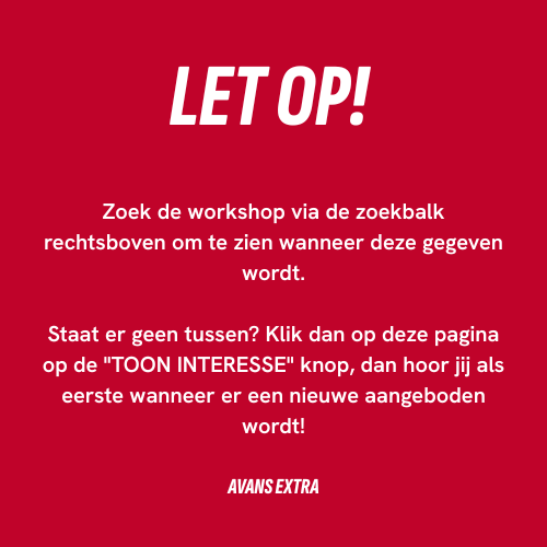 Heb je tijdens de workshopuren normaal gesproken stage? Bespreek dit dan met je stagebegeleider: vaak mag je tijd vrijmaken om aan dit soort trainingen mee te doen. Het levert niet alleen jou iets op, maar ook je stageorganisatie!